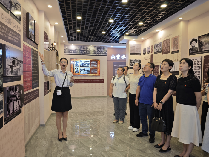 活动中,党员们在讲解员的带领下来到体验馆一楼的党史工运史展陈区。展区分为“伟大开端”、“山重水复”、“抗日烽火”和“天翻地覆”四个篇章,以1919年至1949年中共党史和中国工运史的重要历史交汇事件为脉络,通过文字、图片等形式,展现了波澜壮阔、气象万千的党史和工运史,让大家对百年工运的峥嵘岁月有了更深刻的认识。