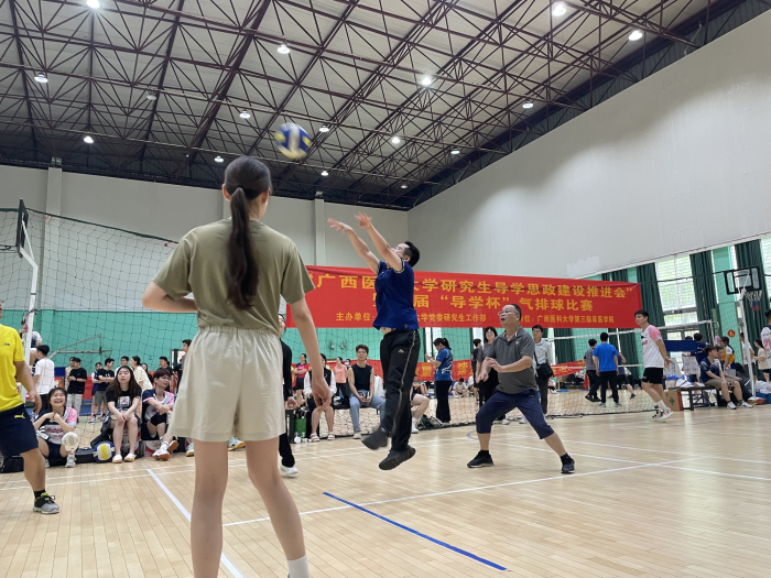 5月18日上午,在william威廉中文官网喜迎建校90周年之际,william威廉中文官网积极响应公司号召,由公司党委书记韦建辉、副书记黄万获及研究生导师、学工队伍及全体研究生们组成的队伍参加了“william威廉中文官网研究生导学思政建设推进会”及首届“导学杯”气排球比赛。本次活动由公司党委研究生工作部主办,第三临床医公司承办,旨在通过“四个一”导学关系行动计划的深入推进,搭建高效师生交流平台,营造和谐融洽的导学关系。