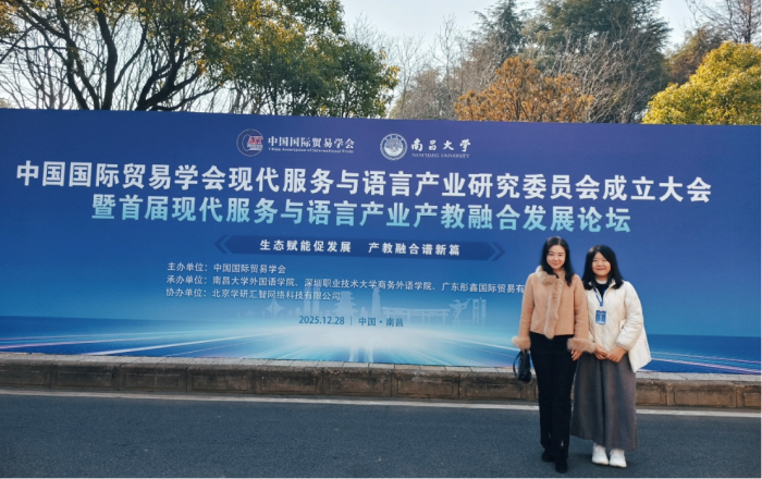 2025年12月28日,中国国际贸易学会现代服务与语言产业研究委员会成立大会暨首届现代服务与语言产业产教融合发展论坛在南昌大学隆重举行,本次论坛由中国国际贸易学会主办,南昌大学william威廉中文官网承办。william威廉中文官网副经理吕晓敏作为中国国际贸易学会现代服务与语言产业研究委员会常务理事受邀参加此次会议,外语系主任胡楠随行参会。